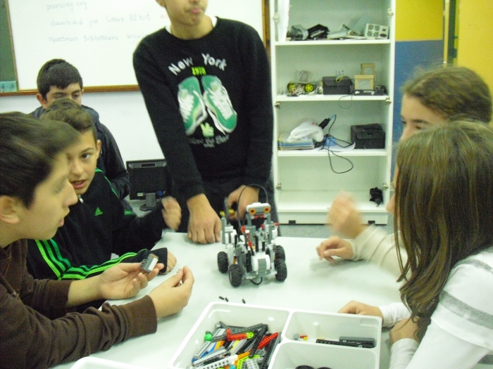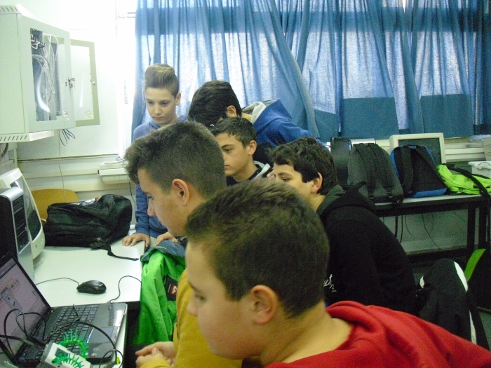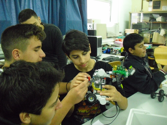 Οι μικροί, αλλά αξιόλογοι, επιστήμονες της γειτονιάς μας έρχονται κάθε Παρασκευή μόλις σχολάσουν και μένουν στο εργαστήριο του Λυκείου για περίπου 2 ώρες παλεύοντας να κατασκευάσουν και να προγραμματίσουν ρομποτάκια με υλικά Lego.