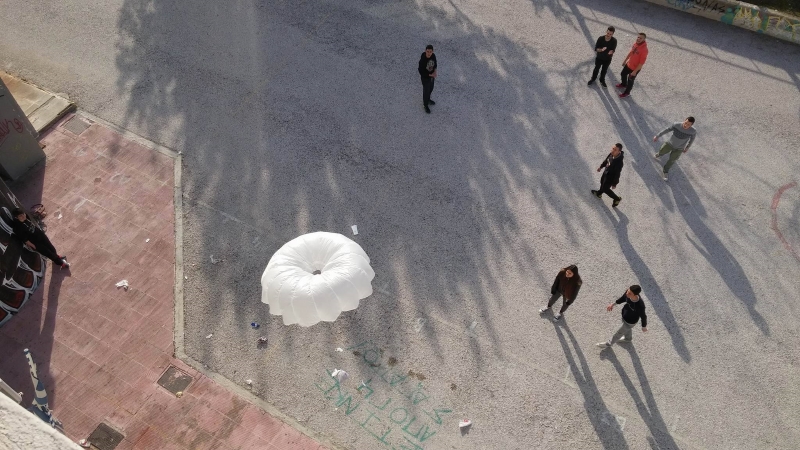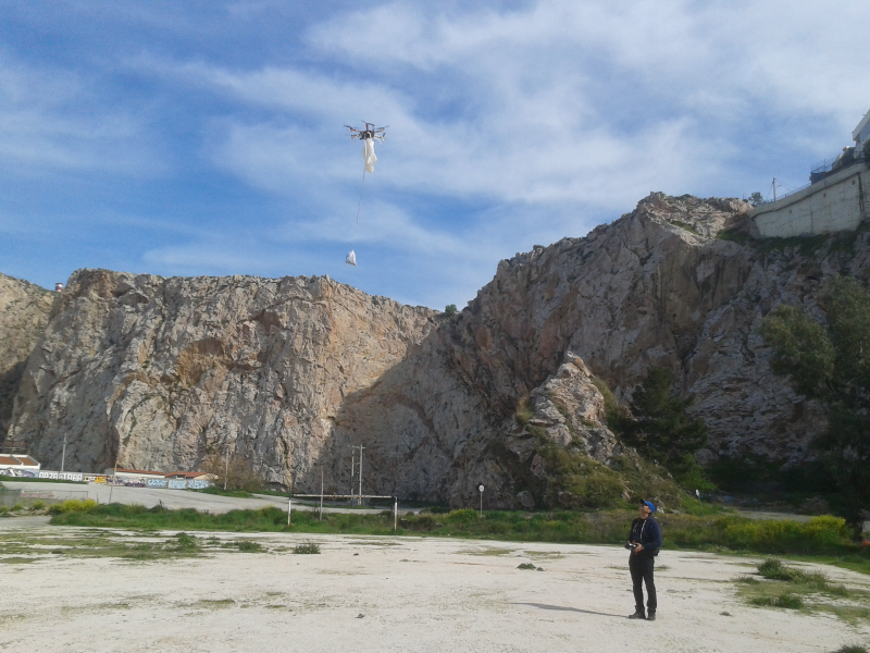 Ο αφανής αυτός ήρωας και πολύτιμος φίλος μας, ας τον ονομάσουμε Χρήστο, θέλοντας πιθανώς να αποφύγει την επανάληψη του εγχειρήματος, μας πρότεινε την χρήση drone για να ανυψωθεί το αλεξίπτωτο σε αξιοπρεπές ύψος.