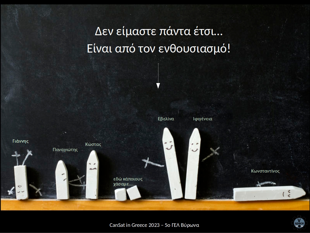 Η ομάδα V-SPACE αποτελείται από μέλη του σχολικού hackerspace του 5ου ΓΕΛ Βύρωνα. Είμαστε 12 μαθητές του 5ου και 3ου ΓΕΛ Βύρωνα με κάθε είδους ενδιαφέροντα.