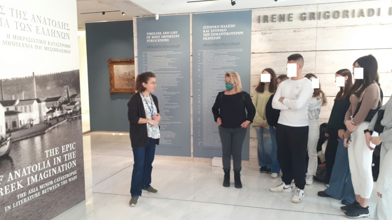 Με τις μαθήτριες και τους μαθητές του Ανθρωπιστικού Προσανατολισμού της Β΄ τάξης του 5ου Γενικού Λυκείου Βύρωνα, είχαμε την τύχη να ξεναγηθούμε στην έκθεση που εξερευνά την Μικρασιατική Καταστροφή μέσα από το πρίσμα της λογοτεχνίας του Μεσοπολέμου. Η επίσκεψη αυτή οργανώθηκε στο πλαίσιο των εκδηλώσεων και δράσεων που πραγματοποιεί το σχολείο μας στο πλαίσιο των επετειακών εκδηλώσεων του Δήμου Βύρωνα για τα 100 χρόνια από τη Μικρασιατική καταστροφή.