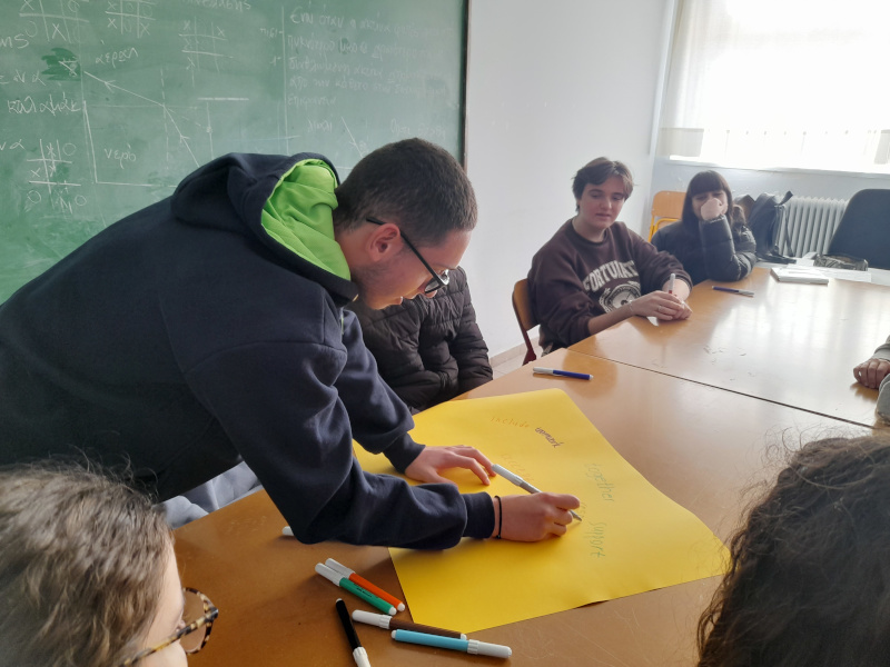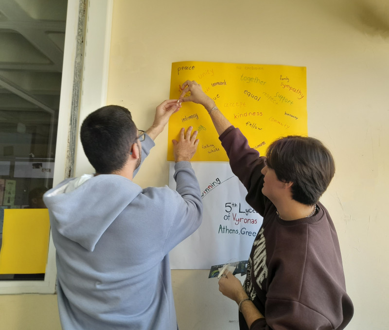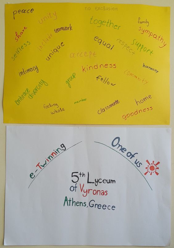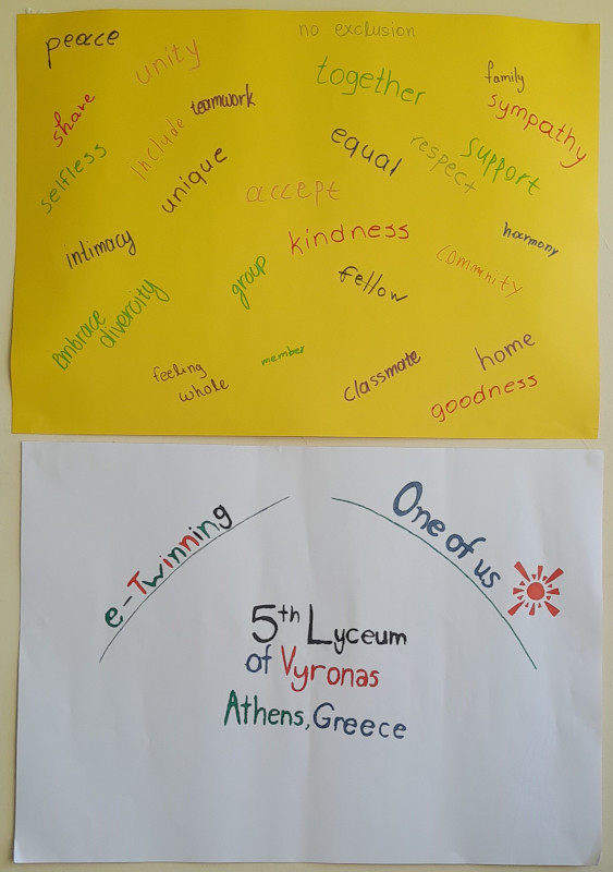 Για το μήνα Φεβρουάριο οι Ε-twinners μαζί με τους συμμαθητές τους από τα συνεργαζόμενα Ευρωπαϊκά σχολεία έχουν ως συνεργατική δραστηριότητα  να δημιουργήσουν ένα λεξικό συμπερίληψης. Λέξεις ή φράσεις που μας βοηθούν να νιώσουμε μαζί ως μέλη μιας ομάδας, μικρής ή μεγάλης. Οι E-twinners του σχολείου μας συναντήθηκαν και έγραψαν όλες τις δικές τους λέξεις σε ένα μεγάλο poster, το οποίο και τοποθέτησαν στην Culture Corner. Οι λέξεις που χρησιμοποίησαν παρουσιάστηκαν μέσω Canva στην πλατφόρμα του Twinspace, μαζί με τις εργασίες των υπόλοιπων σχολείων.