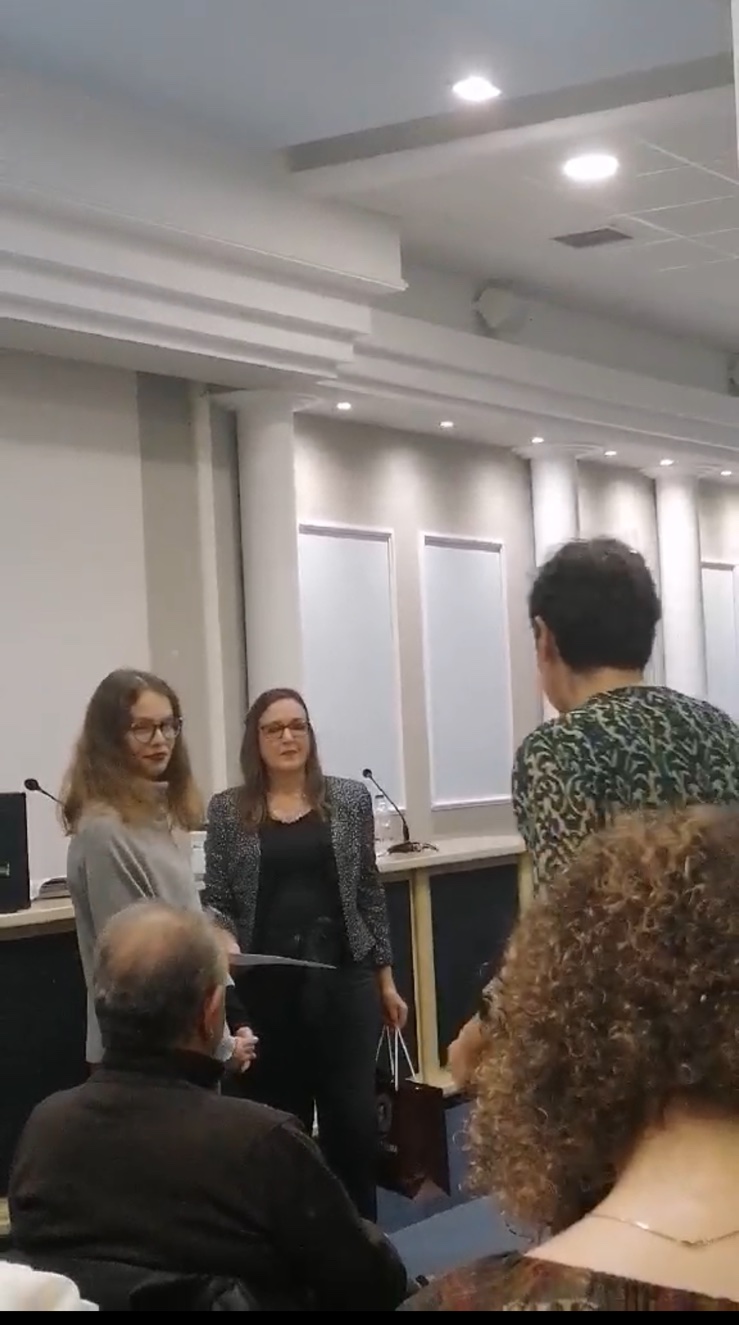 2) την Ελεάννα Παπαζαφείρη, μαθήτρια της Β Λυκείου, με Έπαινο Συμμετοχής για το ποίημά της "Ο καμένος χάρτης ή Ο τελευταίος περίπατος".