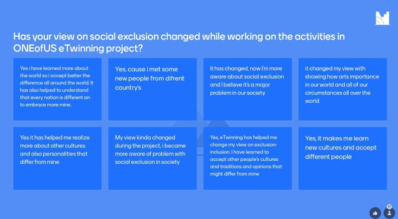 Στο τέλος κατέγραψαν μέσω mentimeter το κατά πόσο η άποψή τους πάνω στο θέμα του κοινωνικού αποκλεισμού έχει αλλάξει συμμετέχοντας στο πρόγραμμα.