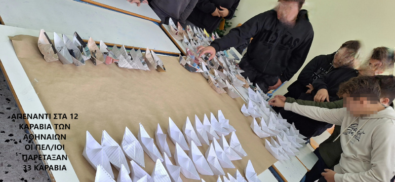 Στις 5 Δεκεμβρίου 2024, τα τμήματα Α2 και Α5 του Λυκείου μας συνεργάστηκαν για να αναπαραστήσουν την ναυμαχία μεταξύ Πελοποννησίων – Αθηναίων/Κερκυραίων, που εξιστορεί ο Θουκυδίδης στο 3ο βιβλίο στα κεφάλαια 76-78.